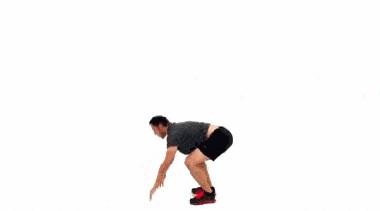双脚分至肩宽,慢慢下蹲,然后运动腿部力量爆发跳起。