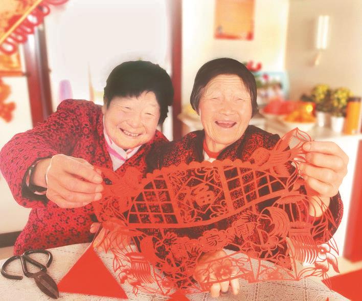 原赵家洼村搬迁户王三女、杨娥子开心过节