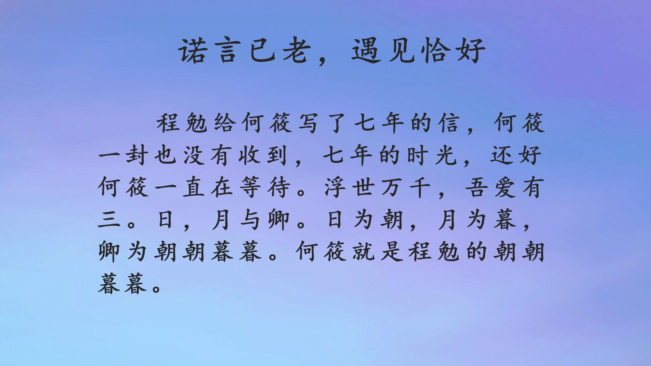 男主程勉,女主何筱,青梅竹马的军旅文。