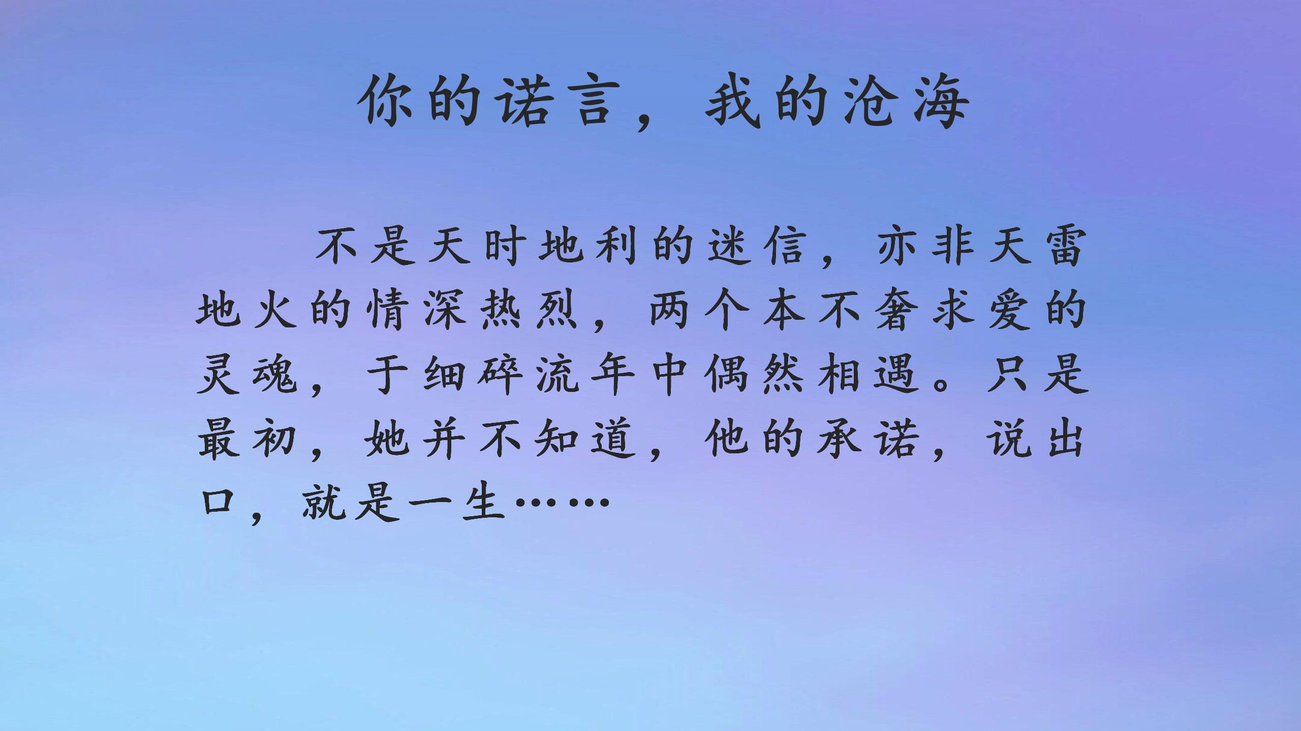 在她人生最无助,最难熬的时候,他走进了她的生命中。在她的眼中,感情里中的坎坷误会避无可避,也必可不少会需要她踽踽独行,却没想到,从始至终,他都坚定的牵着她走了过来。不恋过往,不畏将来,活在当下,爱在当下,他便这么奋不顾身不顾后果的爱上了。