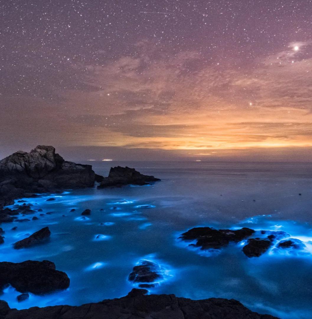 而平潭是我国“蓝眼泪”出现频率最高的地方,每年的4-8月都会有大批的“蓝眼泪”随浪袭来,晚上看到它,就像海洋里的极光,像天使落下的眼泪,行走在海边,就像漫步在蓝色星河之中,如梦如幻。