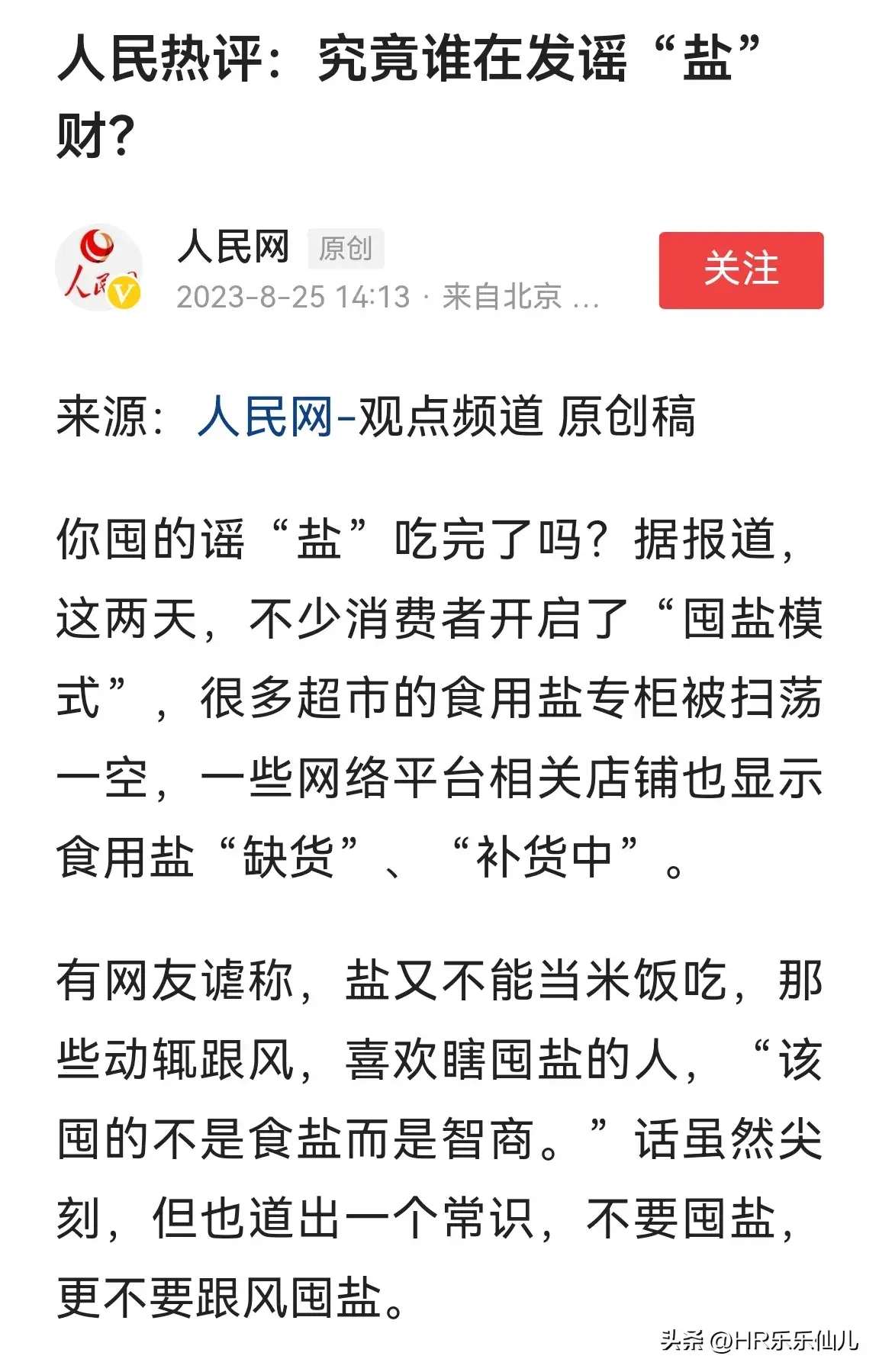 然而,正当全世界所有国家的人民都在谴责这一丧尽天良的行为时,我们的百姓却将超市的食盐区“霸占”了,网络上数个直播带货平台也推销起了含碘食用盐,而且价格比平时至少贵了10%。为什么百姓如此恐慌?究其原因,还是无良商家违背良知,人为“制造”这种恐慌情绪。要知道,在现行经济缓慢提升的时期,商家通过正常渠道的市场行为都会值得鼓励,但借用国际热点,利用人们对科学认知的信息差囤积屈奇、倒买倒卖的行为,违背了基本的商业伦理和道德。