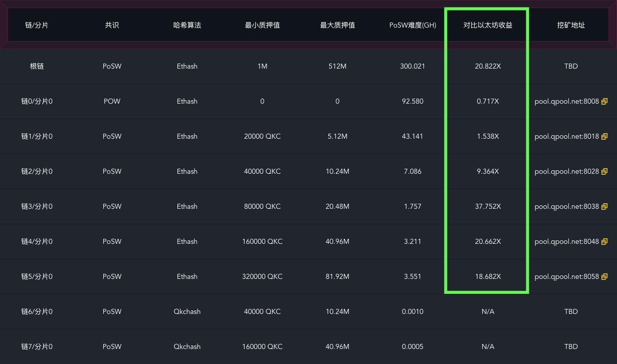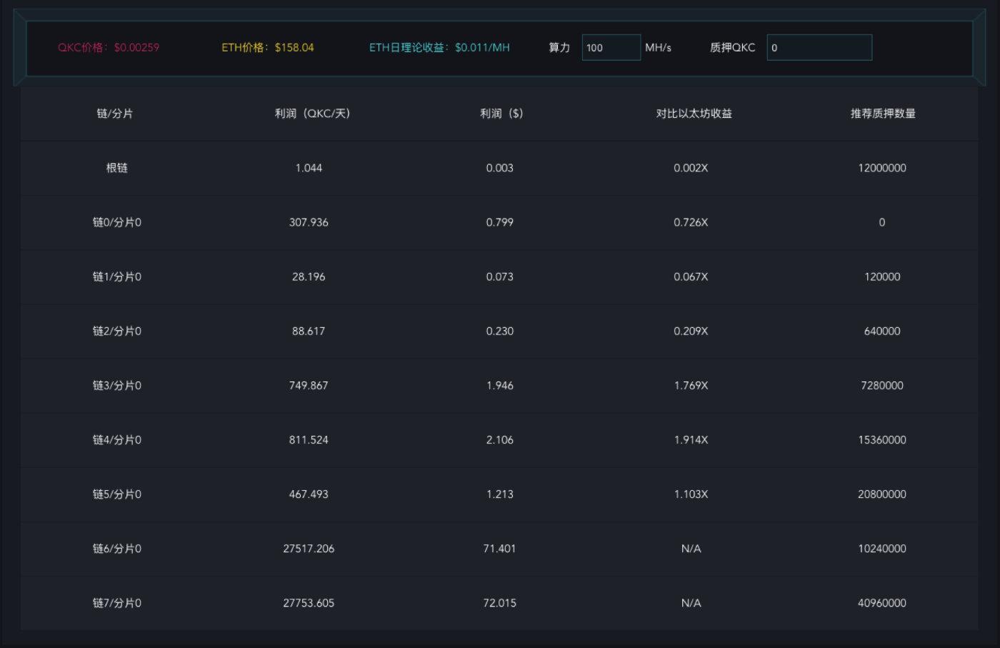 ▶支持显示各分片难度、最小最大质押QKC数量、对比以太坊收益等数据