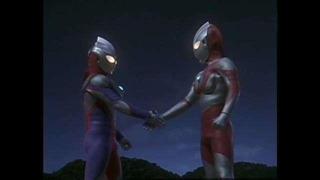 不过也不是只有新生代才致敬,其实《迪迦奥特曼》里就有一集,致敬了圆谷英二时期的圆谷(而且那个时候的致敬是真的致敬)。我想很多迪迦的观众都还对那集大古回到五十年前、迪迦和初代跨越五十年的握手、封印在湖中的怪兽、初代和年轻人的约定留有印象。