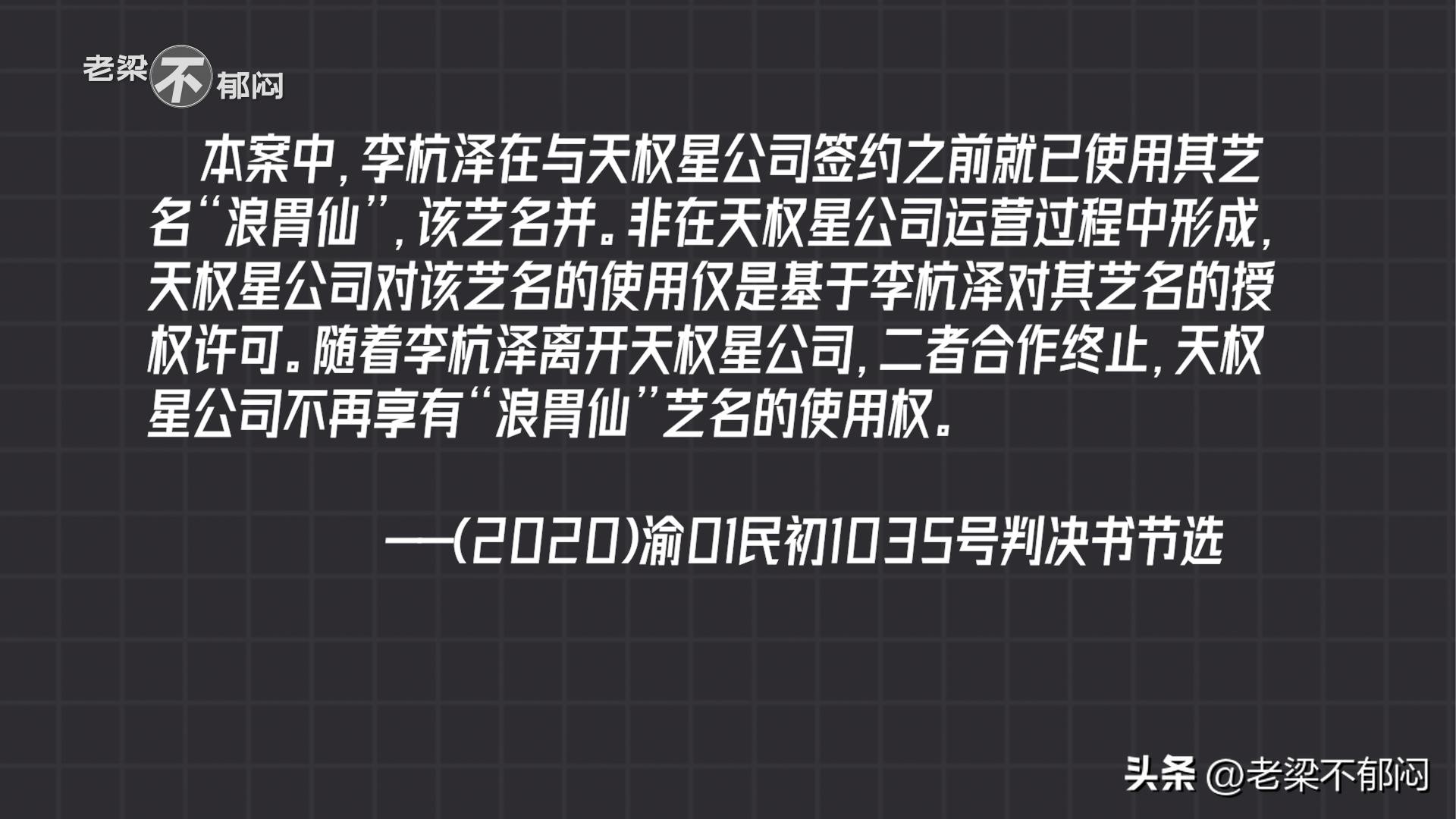 这也就是说,实际上浪胃仙这个名字的使用权一直在李杭泽,一旦李杭泽离开天权星公司便不能再使用浪胃仙这个名称。