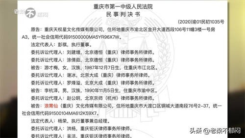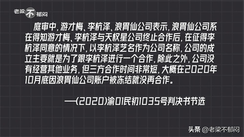 根据司法文书显示,李杭泽当时跟一家叫浪胃仙(重庆)文化传媒有限公司进行合作,这家公司是7月29日刚成立的,李杭泽授权其使用浪胃仙名称。