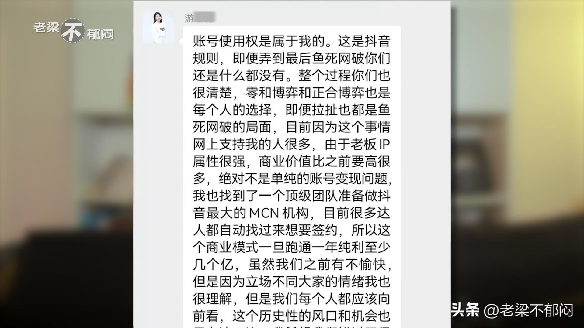 而且大家发现了么,这公司其他人跟李杭泽这边一度是没有沟通的,你公司这么重要的主播在合约要到期的时候,公司董事会其他人没有一起跟她谈谈,说大家一起吃个饭把话说开了,完全让游絮在中间耍的团团转。李杭泽要不是看到诉讼文书都不知道账号存在的问题。