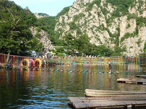 圣谷美地漂流坐落于美丽的庄河步云山蛤蜊河,全长10余公里,漂时3小时,是辽南地区规模最大,河段最长,河水最清,最具特色的峡谷漂流。蛤蜊河依山而成,循山势潺潺流淌,全长50多公里。圣谷美地漂流选择了风景最秀美、水势最湍急的10余公里河段,漂流而下,时而浅滩戏水,时而激流直下,给游客带来最难忘的体验。蛤蜊河的起点在步云山与老黑山脚下,起源于东北第一泉,四面青山环绕,水质清澈见底,是理想的夏日冷水浴场。游客在漂流过程中可尽情湿身,享受玩水乐趣。