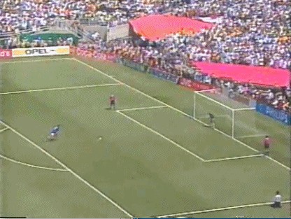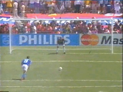 罗伯特-巴乔踢飞点球的瞬间