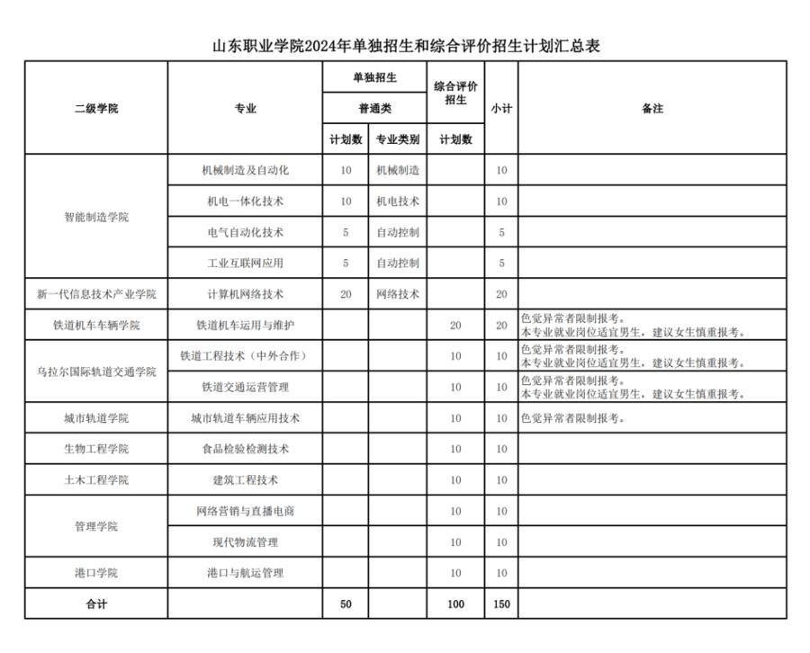 总计150人!山东职业学院发布2024年单招、综评招生计划