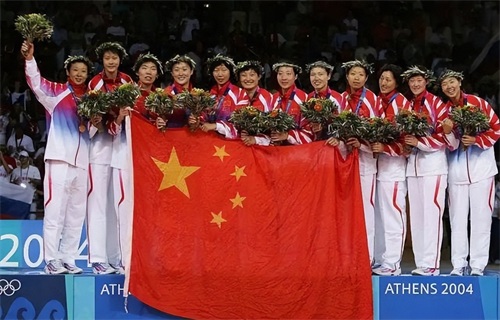 雅典奥运会中国女排夺得金牌 左(一)冯坤