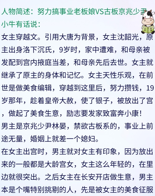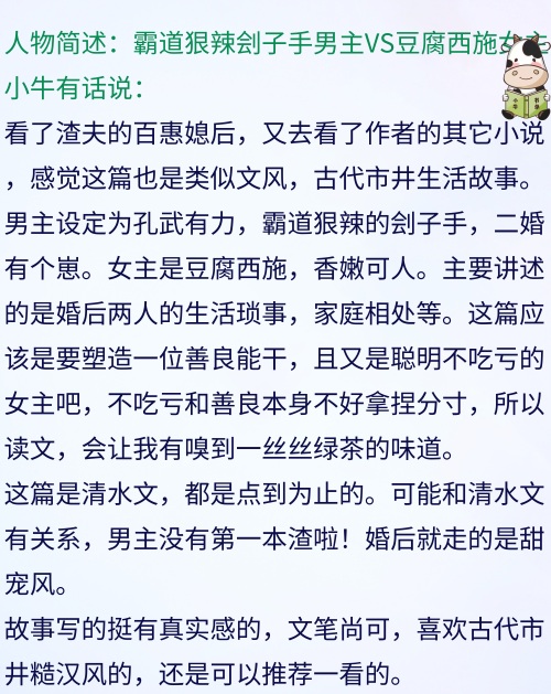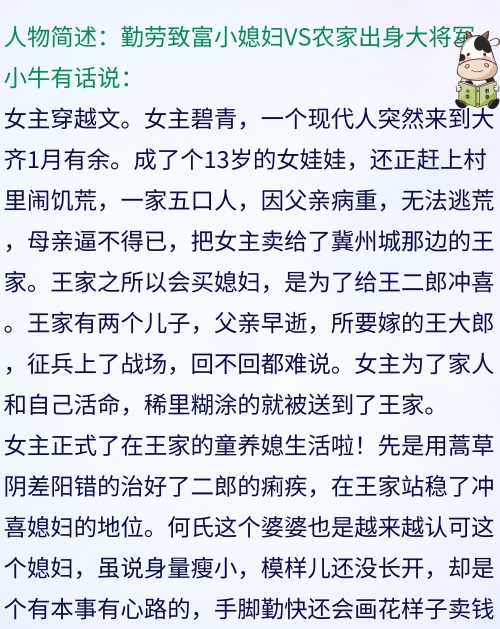 大家好,小牛又来推书啦,本期为宝贝们推荐5本女主穿越文,穿越后原主都没有什么显赫的身世,市井风,世间百态,各色搭配都有哦,比如,娇柔配渣男的,一心搞事业的,专心过日子的。文里有的均是各个朝代里的家长里短、儿女情长。绝对适合闲来观看,文笔轻松。如果喜欢我的推文,请帮忙“四连”好吗?关注、点赞、收藏加转发!谢谢大家啦!