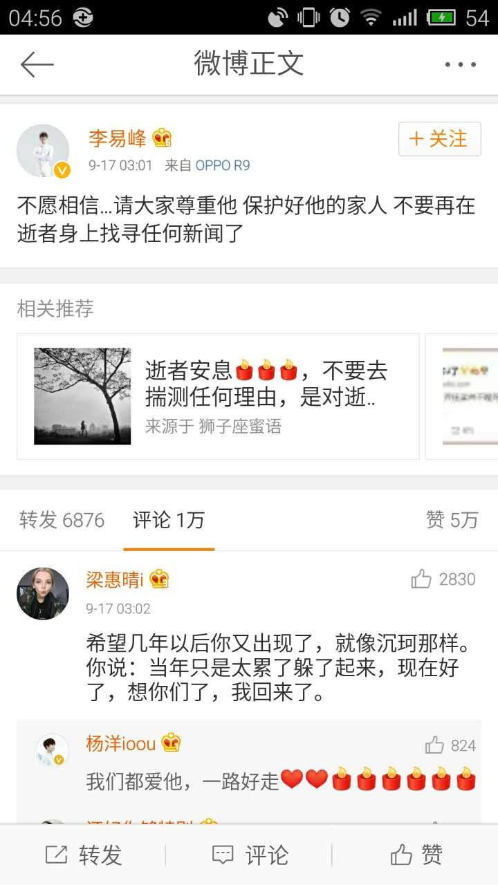 井柏然17日早也发微博表示了他的难过。