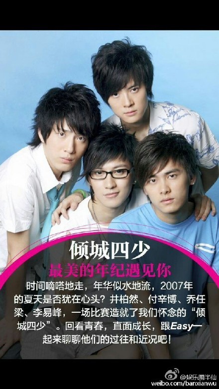 曾经的“倾城四少”:付辛博、井柏然、李易峰、乔任梁。如今好兄弟们天人一方。再也聚不齐了。