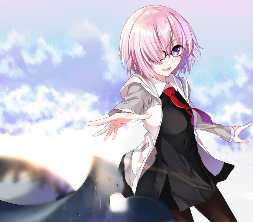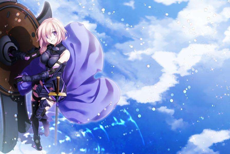 人理保障机关的成员,主角的后辈,依靠凭依继承的方式让英灵附体成为半从者,使用盾牌(圆桌)进行战斗。