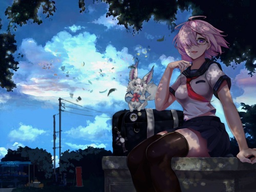 很认真很努力的好孩(学)子(妹),经常莫名其妙地在迦勒底被各种英灵卷入各种事件中,作为英灵的能力也在事件中不断提升。