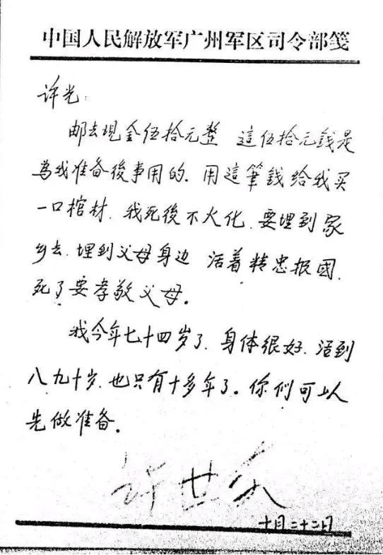 许世友以“生前尽忠,死后尽孝”闻名。“活着尽忠,忠于毛主席。死了尽孝,替老母守坟。”他对毛泽东的忠诚更是至死不渝,曾说:“谁反对毛主席,我就干他!”他因常年征战未能侍奉母亲,晚年多次表达愧疚,母亲去世时他长跪痛哭。他临终前请求土葬陪伴母亲墓旁,邓小平特批“下不为例”,最终实现“死后尽孝”夙愿,成为新中国高级将领中唯一被特许土葬者。