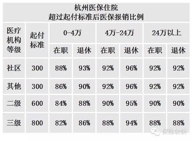 2.住院起付标准及符合医保开支范围费用的医保报销比例