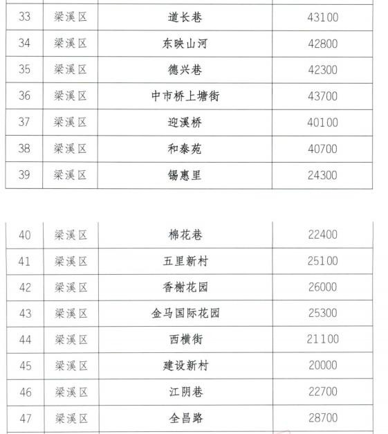 7月26日,无锡市房屋交易管理中心发布通告,公布无锡市首批100个住宅小区二手住房成交参考价格。