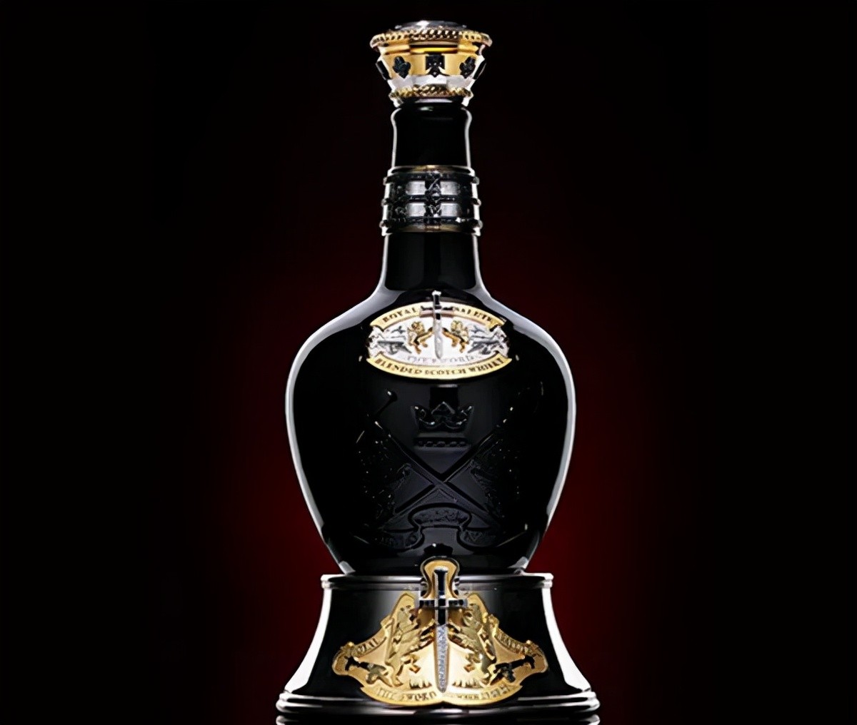这支酒是皇家礼炮最贵的,漆黑的瓶身上装饰有400多颗黑白钻石,定价高达20万美元。由陈年45年以上的威士忌原酒调和而成,限量21瓶。
