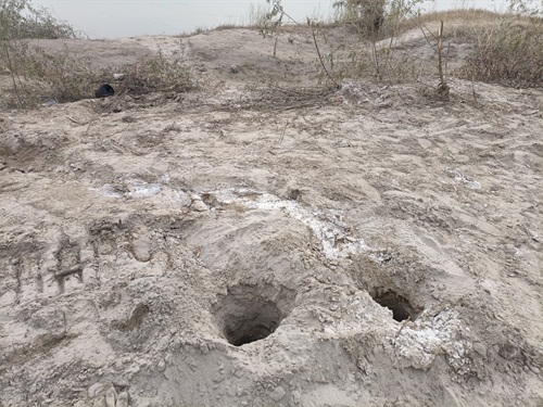 渭河边上的疑似洛阳铲探挖的盗洞