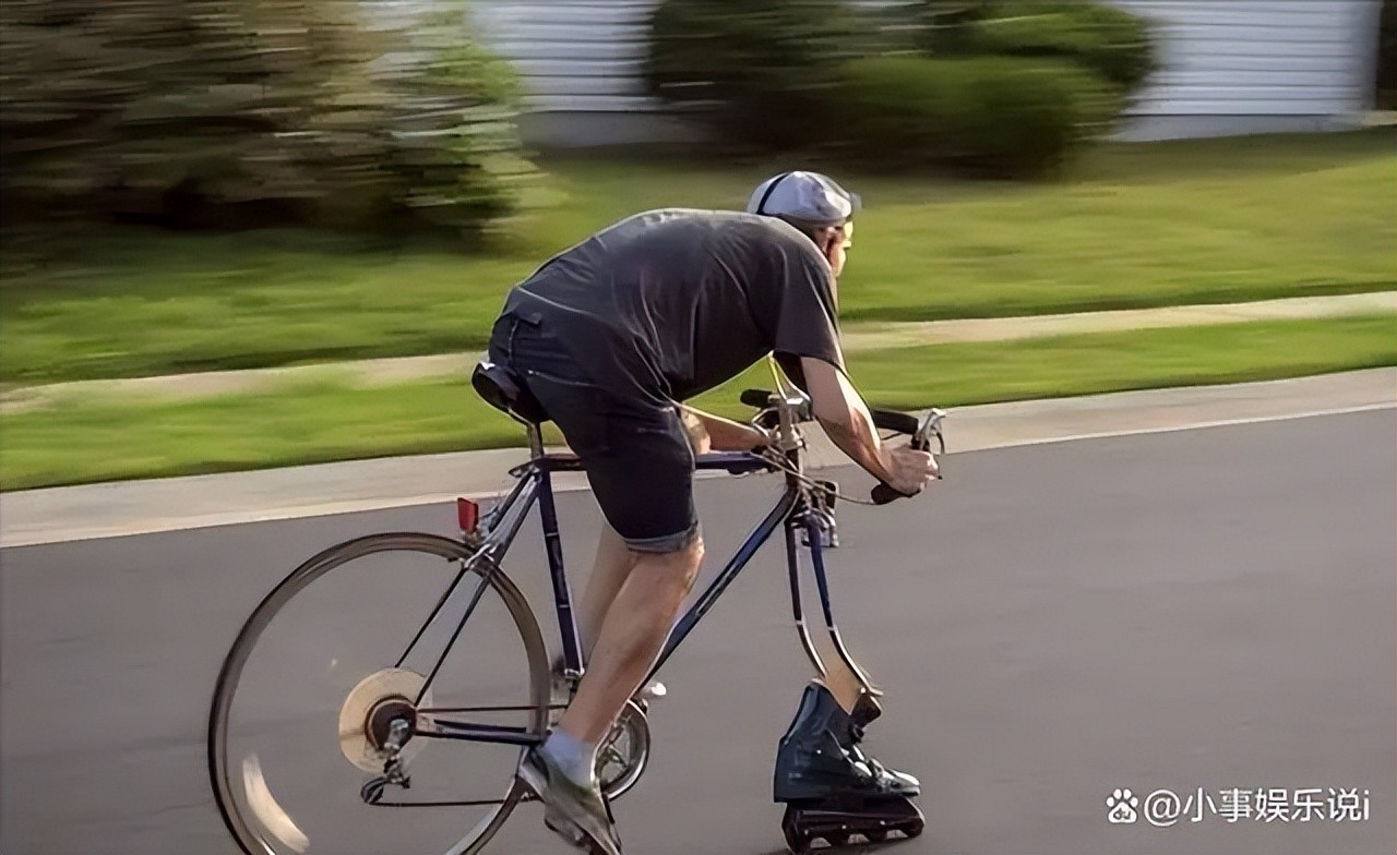14 我感觉我实在是太聪明了,没有前轮怕什么,安装一个滑冰鞋不就得了,只是这刹车有点棘手。