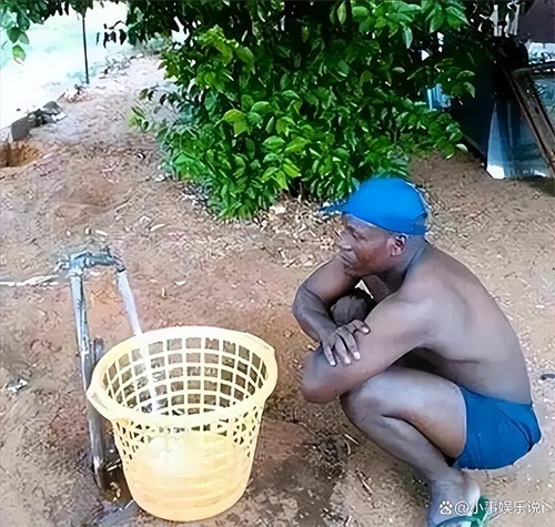04 拿着桶来接水,可是我已经蹲了半个小时了,我的桶还没接满。