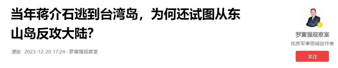 罗富强观察室:2023-12-20:当年蒋介石逃到台湾岛,为何还试图从东山岛反攻大陆?