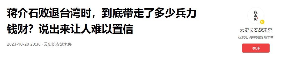 云史长安战未央:2023-10-20:蒋介石败退台湾时,到底带走了多少兵力钱财?说出来让人难以置信