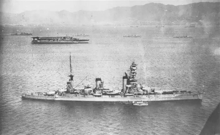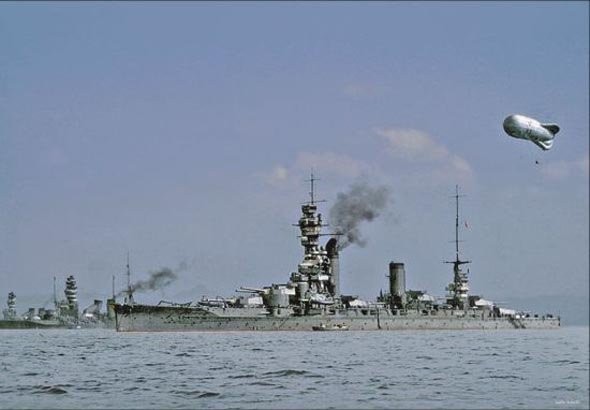 1929年拍摄的扶桑号战列舰,这时候开始搞违章建筑了,但是还没那么夸张,1号烟囱还装上了导流罩