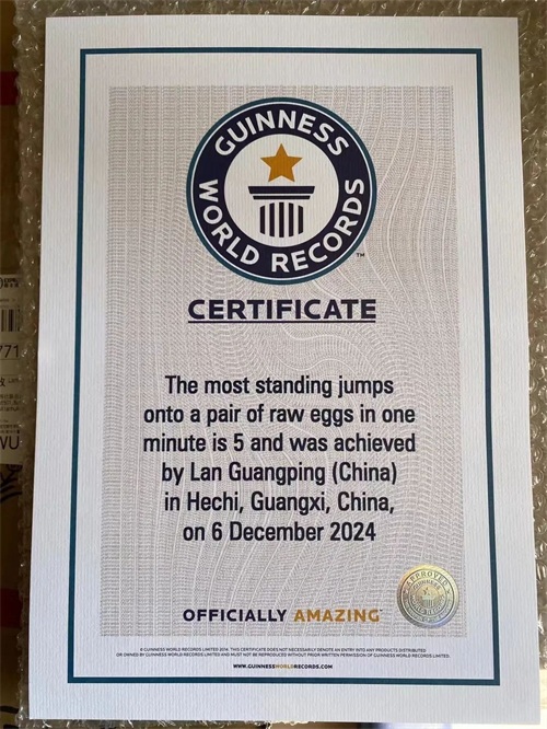 据了解,2009年,兰广平在央视《吉尼斯之夜》创造一分钟跳踩鸡蛋6次不破的吉尼斯世界纪录,此后,他再次挑战自己,先后在2013年意大利吉尼斯之夜,2017年天津卫视《跨时代战书》节目中两次刷新自己的吉尼斯世界纪录。2024年12月5日~6日,“纪录瞬间·誉定宜州”吉尼斯世界纪录挑战赛在河池市宜州区举行。兰广平挑战一分钟内连续5次跳上生鸡蛋不破成功,再次获得吉尼斯世界纪录证书。