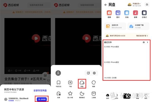 此外,夸克还自带网盘,如果你浏览的网页视频或图片加载速度较慢,可以将网页的资源存至网盘,到网盘观看视频,播放速度会提升很多。不过,这个功能没有开会员是有限制使用次数的。