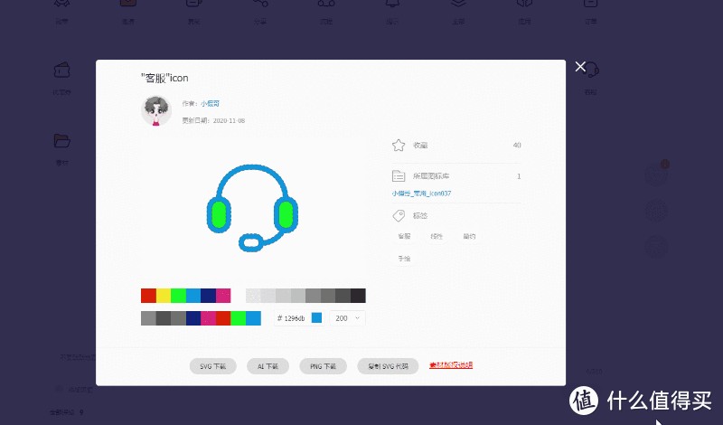 网站支持SVG、PNG等多种格式,支持批量下载。此外,直接点开图标,还能修改尺寸和颜色。