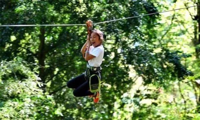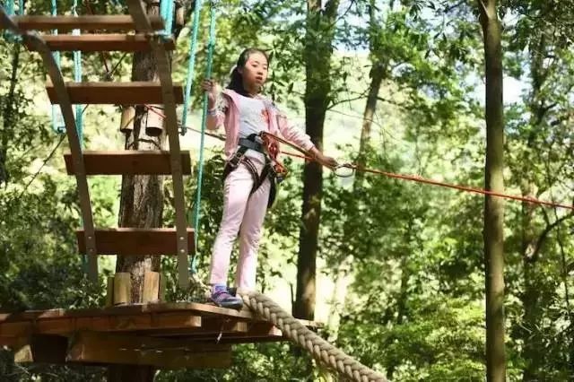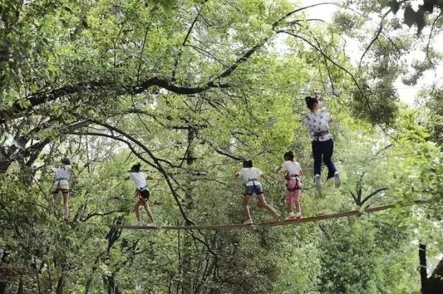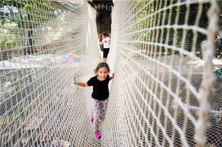 要是你觉得前面说的那些耍法都太轻松了,那就带娃去玩飞越丛林吧,在100%安全措施保护下,让孩子独立完成一系列障碍环节~