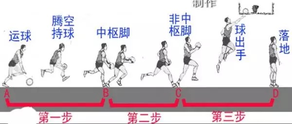 百度百科:第一步就是持球点前那一步,第二步是持球点后的第一步,第三步是第二步完了再跨一步上篮。这就是所谓的标准的三步上篮。