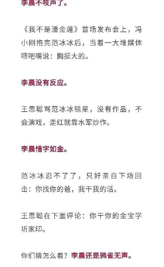 而在冰冰被人喷的时候,李晨好像确实没有站出来说过一句话: