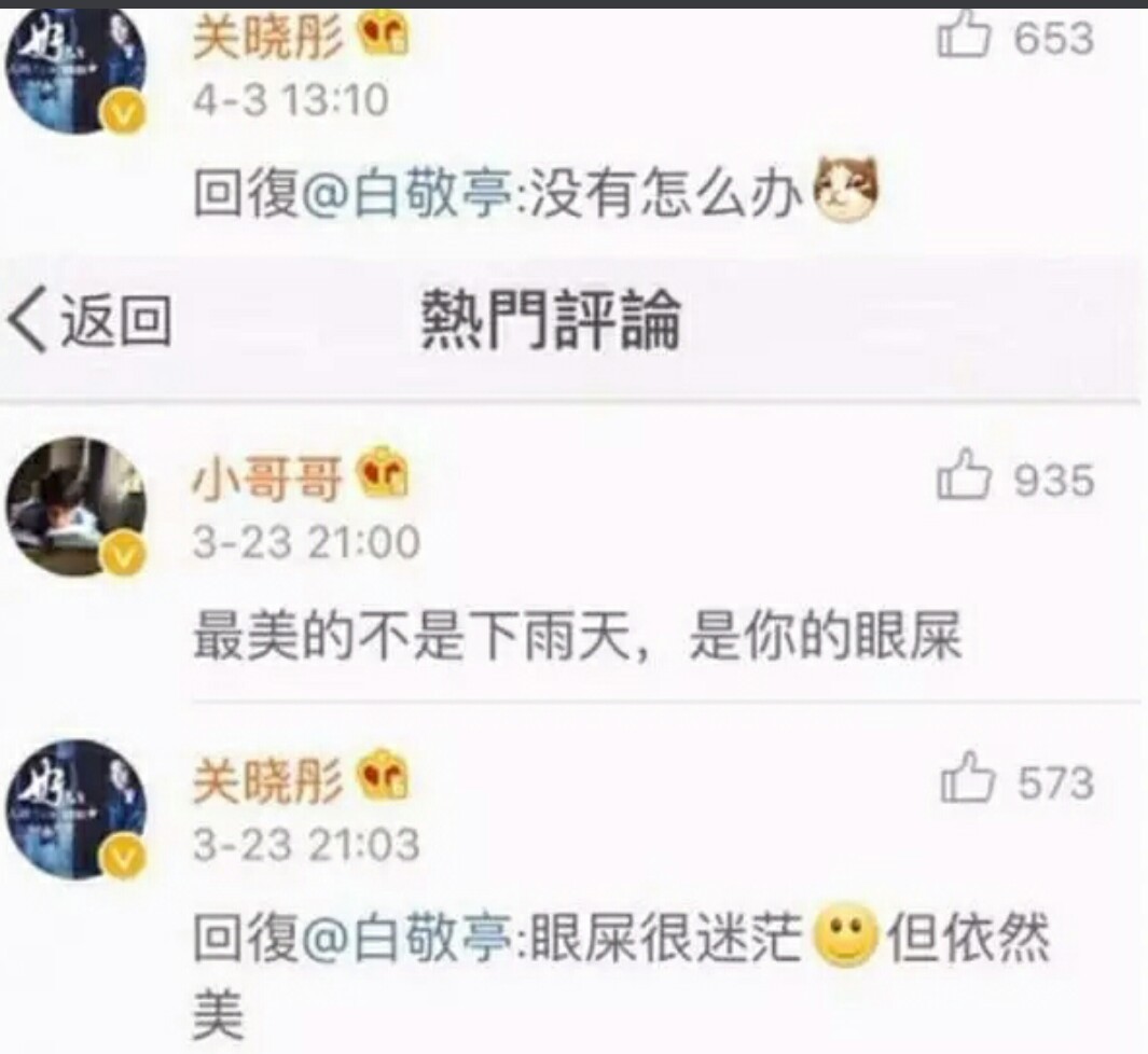 还记得当时陈骁和陈妍希的未公开时微博上总出现兔子的表情,而关晓彤和白敬亭现在总出现狗狗的表情