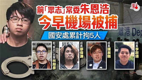 据悉,国安处人员今(6日)早在机场再拘捕一名涉案者,消息透露,他是前“香港众志”常委朱恩浩,今日他准备搭机前往台湾。