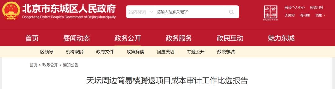 我单位为北京市东城区住房和城市建设委员会,就天坛周边简易楼腾退项目成本审计工作,现通过比选方式选择和确定审计单位,邀请合格的参选人进行比选。