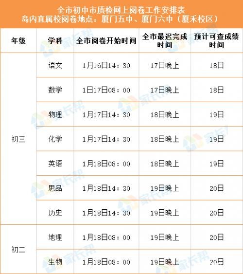 教育/局近日公布了具体的质检阅卷安排~