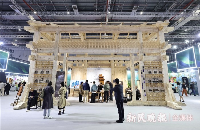 图说:江苏展区以“榫卯”造型亮相 新民晚报记者 王凯 摄
