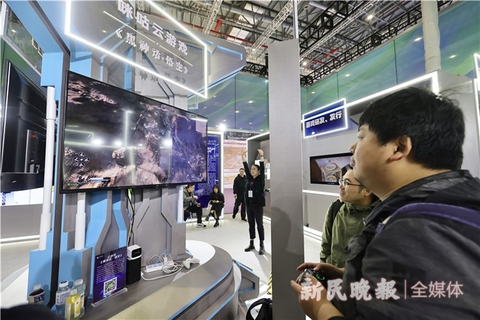 如果说浙江展区3D立体玉琮叫那份来自远古的磅礴与神秘变得亲切,安徽展区的开放式巨型穹幕让人仿佛亲身漫步于云雾缭绕的山峦之间,聆听溪流潺潺,感受清风拂面,“足不出沪”踏上一段梦幻般的大黄山之旅,那么步入江苏展区,巨大的“榫卯”则让人直观感受到传统文化的冲击力,感受到榫和卯咬合后的紧密连接。“我们特别邀请到国家级非物质文化遗产代表性项目‘精细木作技艺’江苏省级代表性传承人雷勇制作了‘榫卯’,不仅希望打造展陈空间上的亮点,更想要围绕这一元素展示江苏赓续中华文脉,推动优秀传统文化创造性转化、创新性发展的全链路实力。”展区负责人自豪地介绍说,在第五届长三角文博会上,江苏展区创新打造了展中展,以“游戏是怎样炼成的”为主题,集中展示原画、建模、动捕、动画、发行和运营、云游戏、周边开发等游戏产业链环节上的优质企业,打造游戏全流程生产场景。
