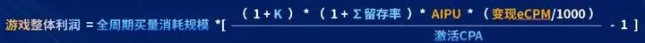 K:自然量系数,可以衡量游戏的吸量能力,与游戏自身质量密切相关,此外也可以借助冲榜大推或其他运营手段提升AIPU:日均人均广告展示次数,与游戏的变现能力正相关,需要与用户体验指标相互平衡∑留存率:表示留存率累加和,用于估算用户生命周期长度