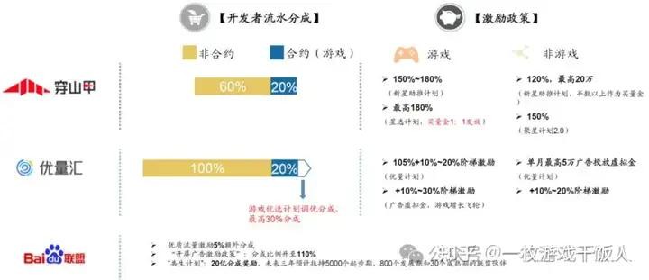 包括穿山甲、优量汇以及百度联盟等都推出过相应的开发者支持计划。随着流量红利褪去,进入流量精细化运营阶段之后,头部联盟都开始升级平台,从原先的变现平台逐渐转变为帮助开发者实现“增长+变现”,做头部产品和精品是一种趋势。