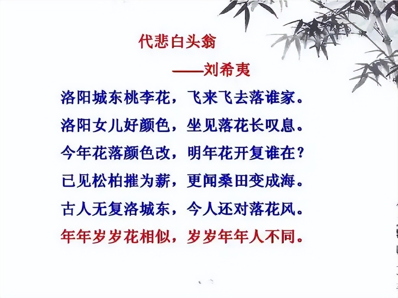 然而,刘希夷的一生却充满了悲剧色彩。他虽然才华横溢,但在当时的社会环境中却未能得到充分的赏识与重用。据传说,他因《代悲白头翁》中的“年年岁岁花相似,岁岁年年人不同”一句,被其舅父宋之问觊觎,宋之问欲据为己有,刘希夷不从,竟被宋之问迫害致死。这一事件虽然存在争议,但也从侧面反映了当时文坛的复杂与黑暗,以及诗人在权贵面前的无奈与脆弱