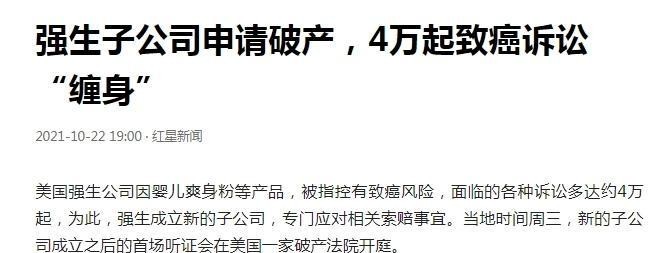 强生婴儿爽身粉涉嫌致癌花51亿求和解,还有6万多起案子等开庭
