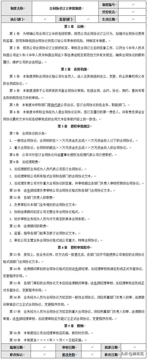 二、合同协议业务流程相关制度