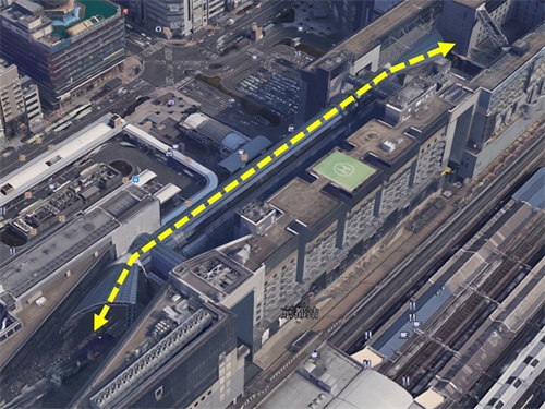 火车站位于城市繁华的中心地带,周边全是城市综合体。见下图: