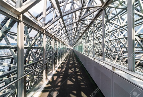 除此之外,还有一个空中连廊连接大楼东西两侧,从东楼的东广场直达西楼的购物中心。这条空中径路也是世界上跨度最长、高度最高的半室内空中连廊。