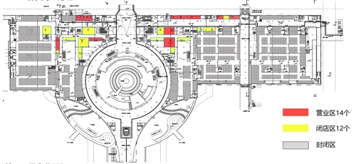 你现在去看的西站的地下商业,有很多店铺是关闭的。下图是2020年11月西站地下商业的运营情况。二十多个店,近一半是关闭的。图中红色是营业的店铺,黄色是关闭的店铺。
